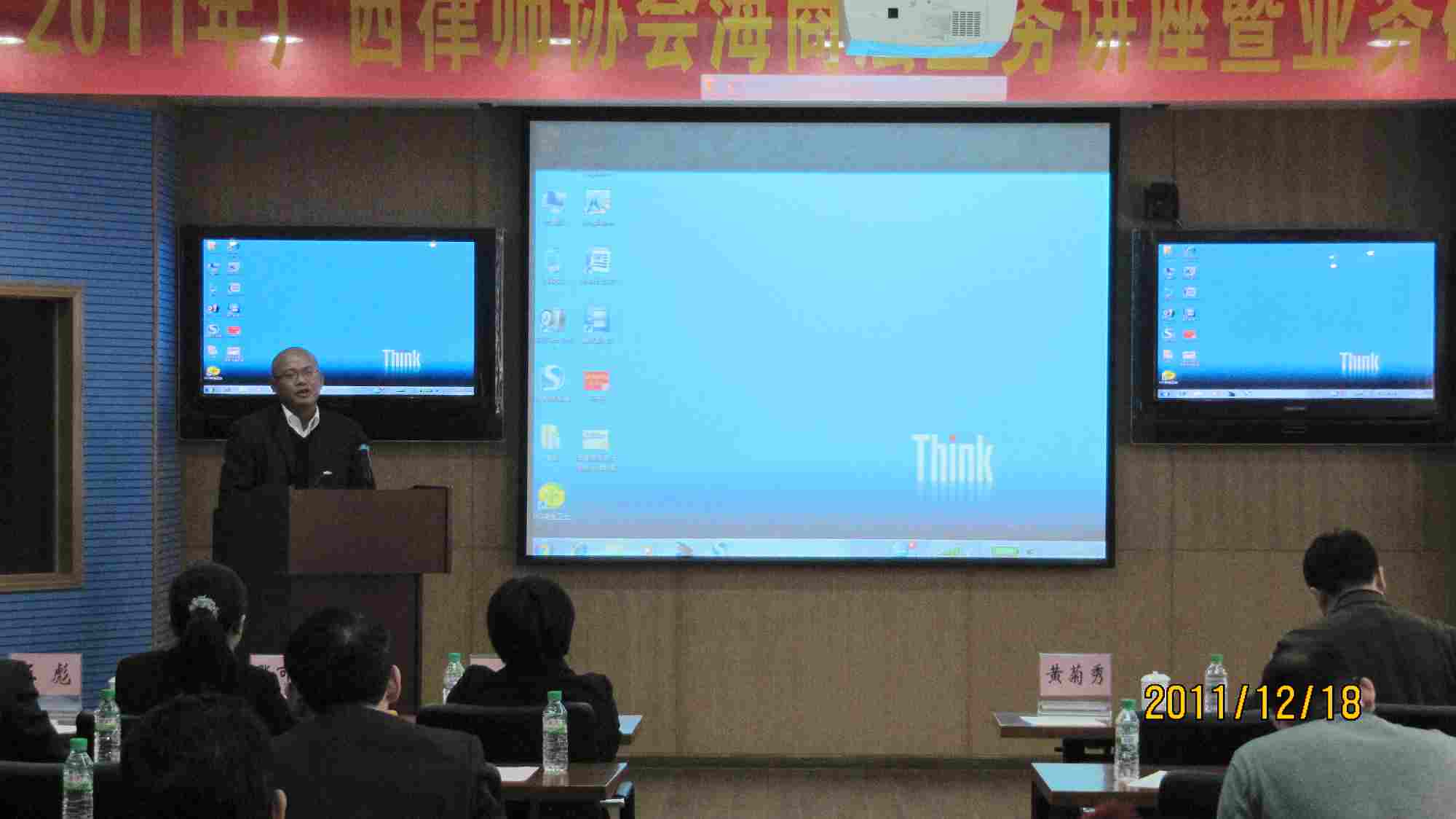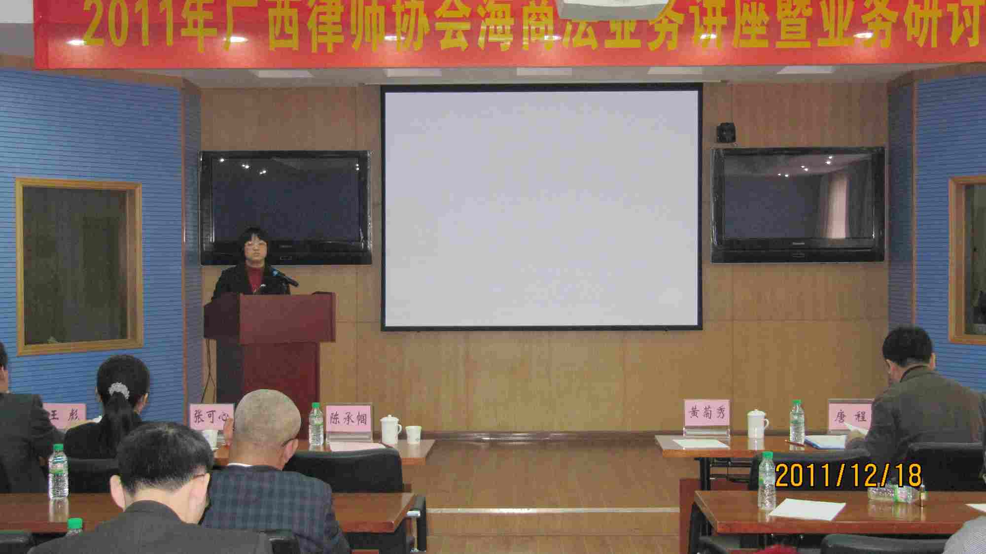 2011年12月18日上午,广西律师协会海商法业务讲座暨业务研讨会在北海市银滩的广西干部学院举行。我所全体律师参加了会议。