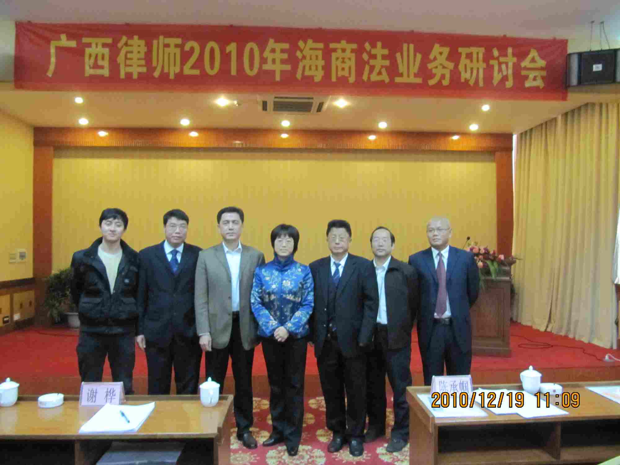 2010年12月18日-19日,我所主任陈承帼律师、副主任谢宗宝律师以及卢波锋律师、徐海超律师参加了广西律师协会海事海商专业委员会在钦州海豚大酒店召开的广西律师协会海商海事专业委员会2010年年会暨广西律师2010年海商法业务研讨会。我所主任陈承帼律师作为广西区律师协会的分管副会长和广西律师协会海事海商专业委员会主任,全程主持了本次会议。北海海事法院副院长谢桦、海商庭庭长刘乔发及原副院长张德生应邀出席研讨会并作了演讲和嘉宾点评。