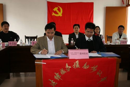 律师管理处处长李健代表律协、律管党总支与马山县司法局代表韦乃勤局长签订“法律服务援助活动协议书”